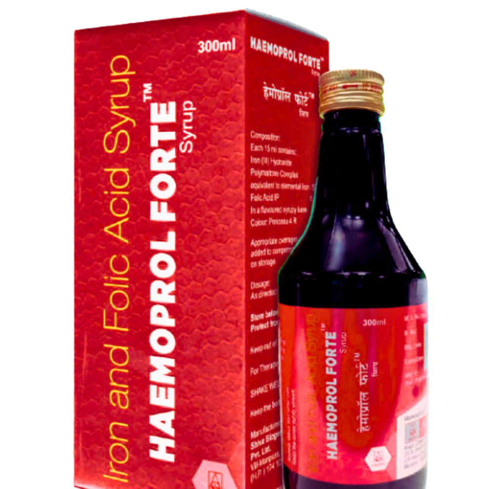 Haemoprol Forte is a powerful Iron and Folic Acid Syrup that helps treat and prevent anemia, fatigue, and iron deficiency. Ideal for pregnant women, children, and people recovering from illness.