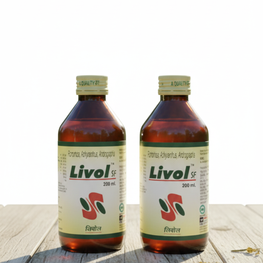 Livol SF Syrup एक शुगर-फ्री आयुर्वेदिक लीवर टॉनिक है जो लीवर को मजबूत बनाता है, डिटॉक्सिफिकेशन में मदद करता है और पाचन क्रिया को सुधारता है। इसमें पिक्रोराइज़ा, अचिरैंथस और एंड्रोग्राफिस जैसी जड़ी-बूटियाँ शामिल हैं जो लीवर की कोशिकाओं की सुरक्षा और पुनर्निर्माण में सहायक हैं।