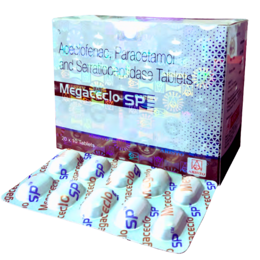 Megaceclo SP | Aceclofenac, Paracetamol & Serratiopeptidase Tablets